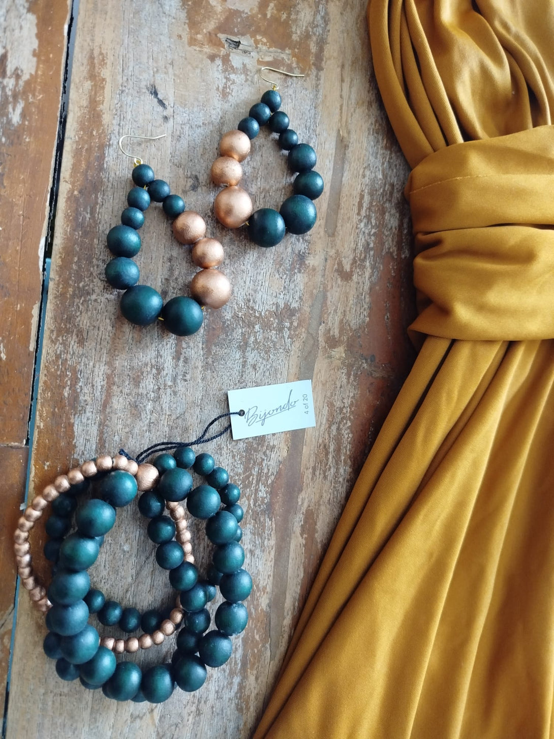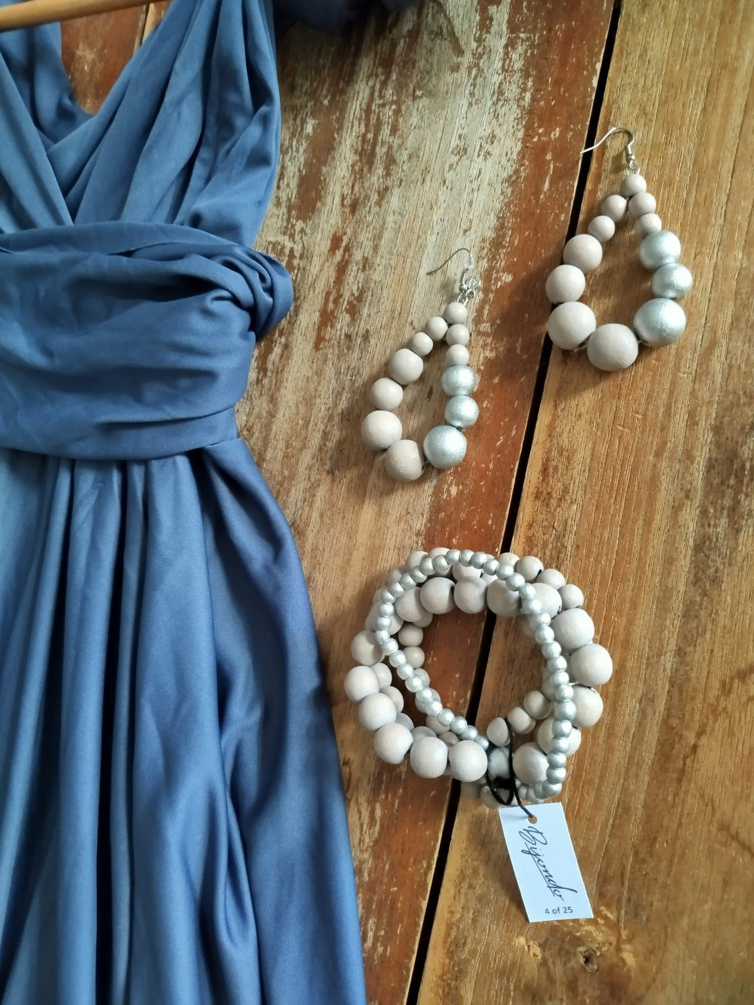 Un bundle esclusivo che unisce versatilità e artigianalità: il vestito trasformabile Ayunita corto ai raffinati gioielli della linea Brasile Metallic.
