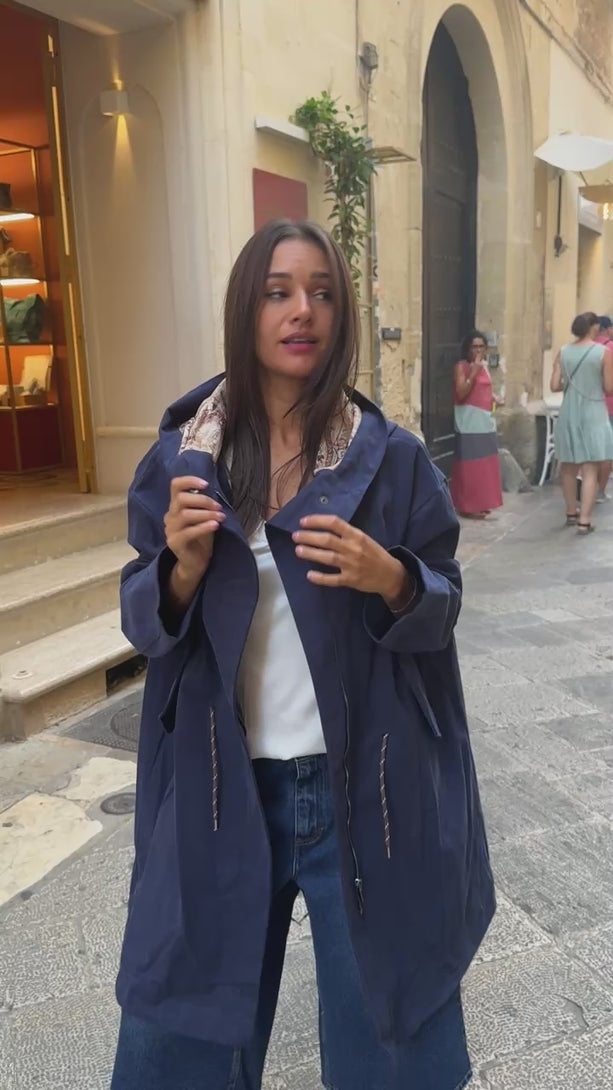 Der Camilla Parka vereint Stil und Funktionalität mit raffinierten Details: Das gemusterte Detail in der Kapuze verleiht ihm Persönlichkeit, während der verstellbare Kordelzug in der Taille eine perfekte und bequeme Passform ermöglicht. Ideal für alle, die ein vielseitiges und unverwechselbares Kleidungsstück für den Alltag suchen.