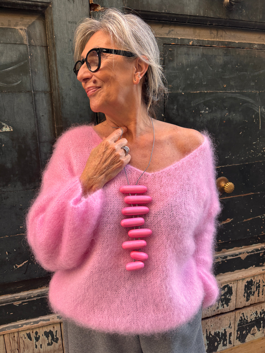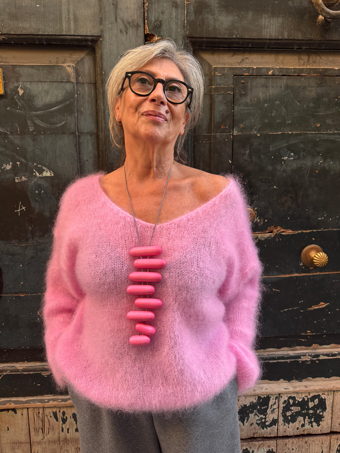 This soft mohair sweater combines elegance and versatility. The V-neckline slims the silhouette, while the straight cut ensures a comfortable, unobtrusive fit. The long sleeves offer full coverage, perfect worn alone or layered over a shirt for a sophisticated look. Ideal for those seeking a versatile piece that doesn't compromise on comfort or style.
