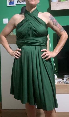 The Ayunita short dress is not a simple dress... but a short transformable dress with which to make different outfits! The long bands that characterize it are the protagonists of the various models that can be created based on the desired neckline.