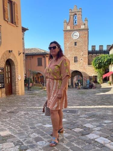 The Mirka light short rayon dress with V-neck, short sleeves with slits, elastic waist and mini length, is a fresh and light short dress characterized by a tie dye pattern, for a trendy summer. If you love boho chic style you are in the right place!