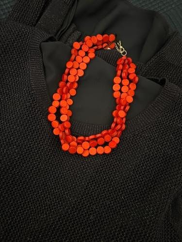 Collar corto, juvenil y colorido formado por tres hilos de discos de madera. Un toque de color delicado, sencillo y particular a la vez. Completa tu look con la pulsera a juego!