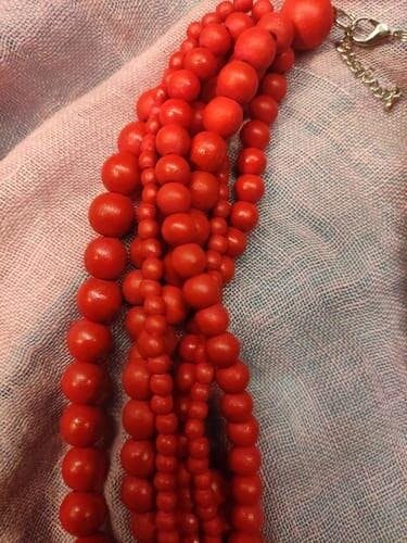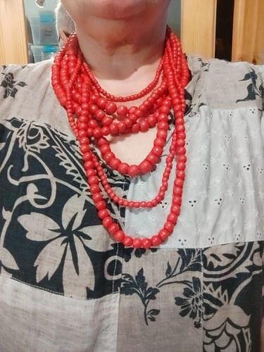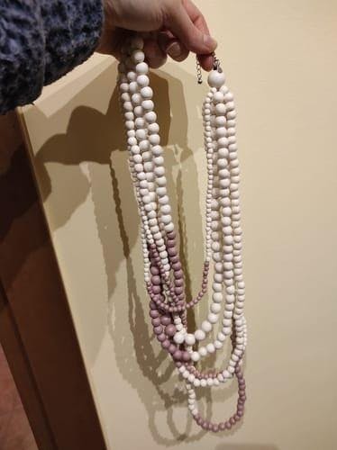 Collana in legno formata da più fili con sfere di diverse dimensioni. Un grande classico rivisto e ridisegnato in chiave contemporanea. La sua versatilità la rende adatta a qualsiasi look.