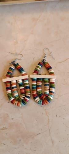 Gli Orecchini Samoa sono formati da tanti piccoli dischi colorati, etnici e chic allo stesso tempo.
