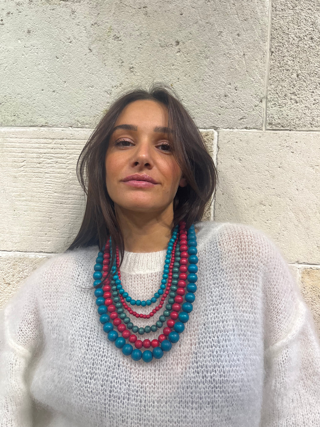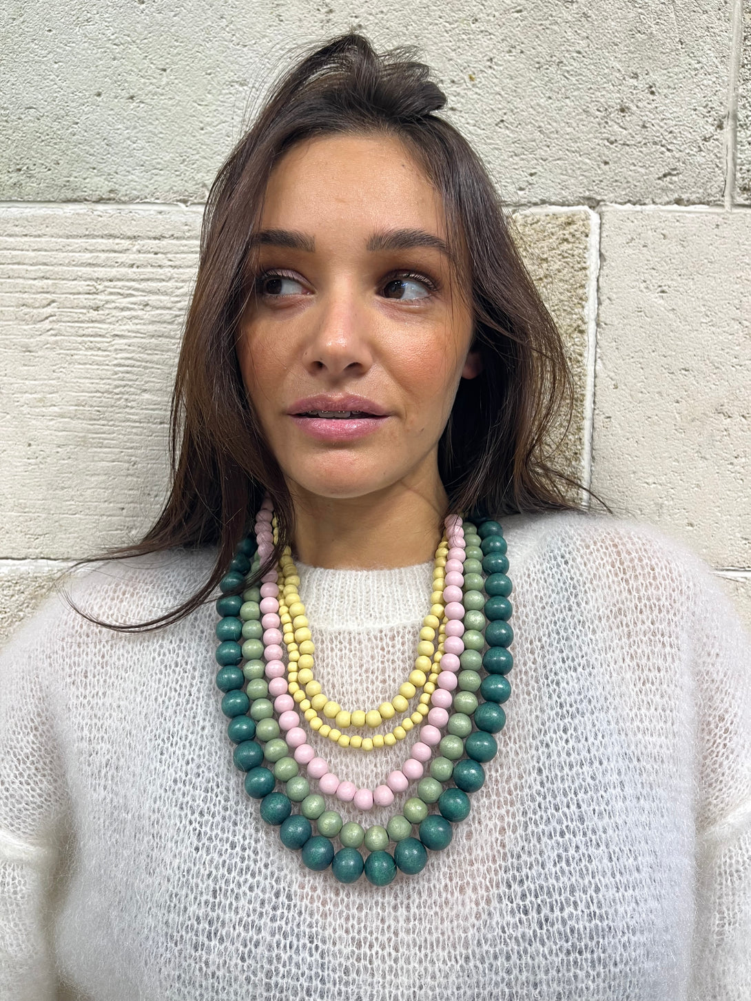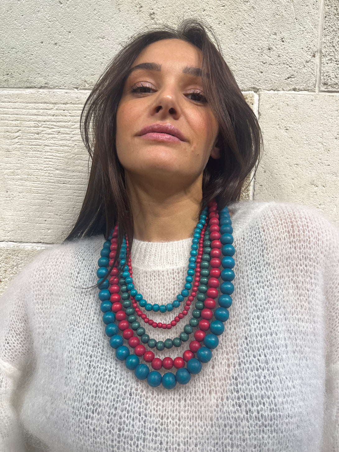 Tanti fili composti da sfere di dimensioni e colori diversi compongono la corta legno Sololaki, un classico intramontabile.
