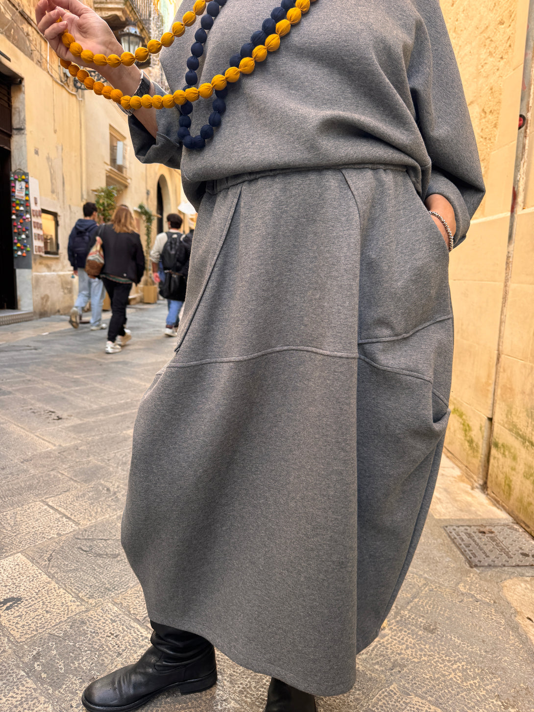 Questa gonna in felpa Rowan unisce comfort e stile casual grazie alla sua ampia vestibilità e all’elastico in vita che garantisce una perfetta aderenza senza rinunciare alla libertà di movimento. Le cuciture asimmetriche aggiungono un tocco moderno e distintivo, rendendola ideale per chi cerca un capo pratico ma con personalità. Perfetta per look rilassati ma curati in ogni dettaglio.