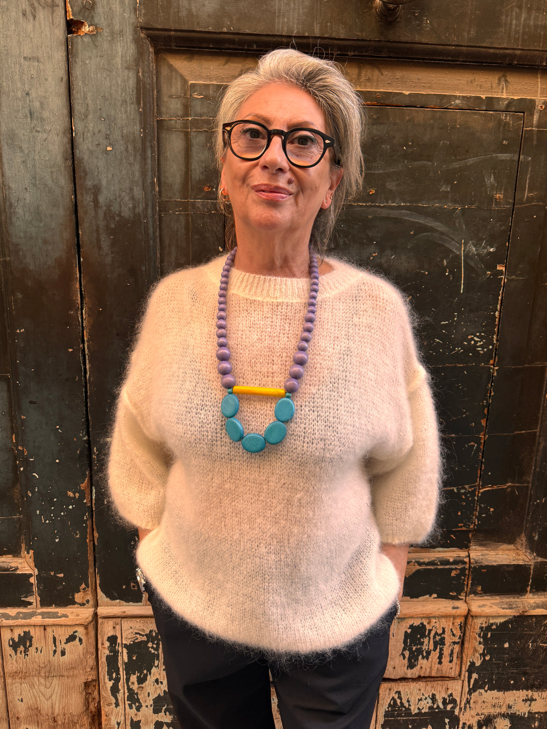 Il Kid Mohair è una fibra pregiata e leggera ottenuta dal primo vello della capra d’Angora. 🌿