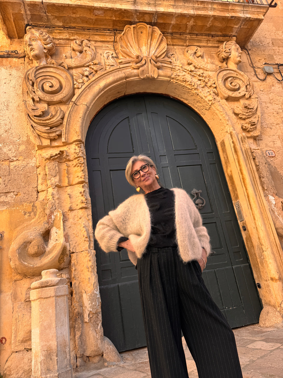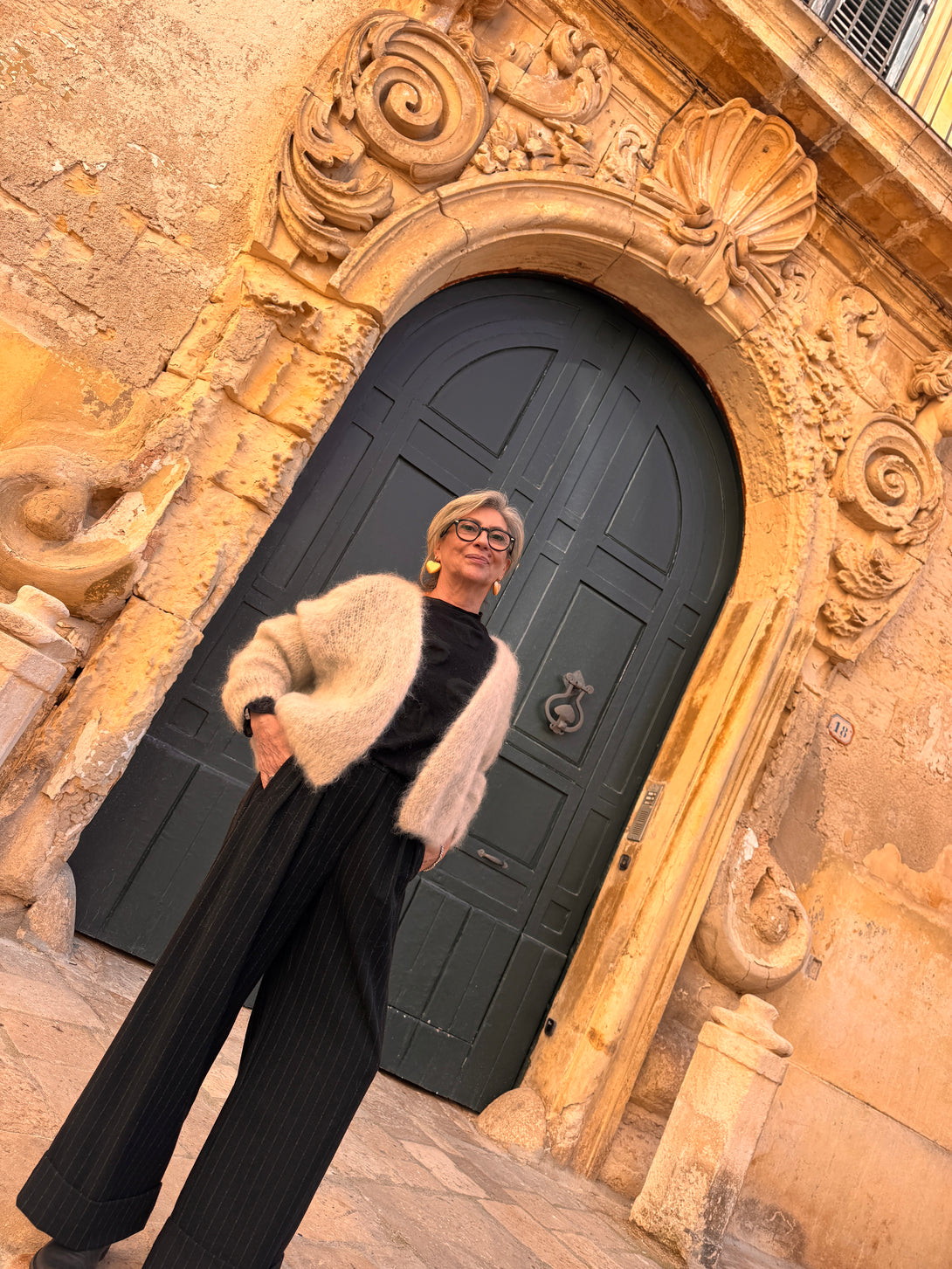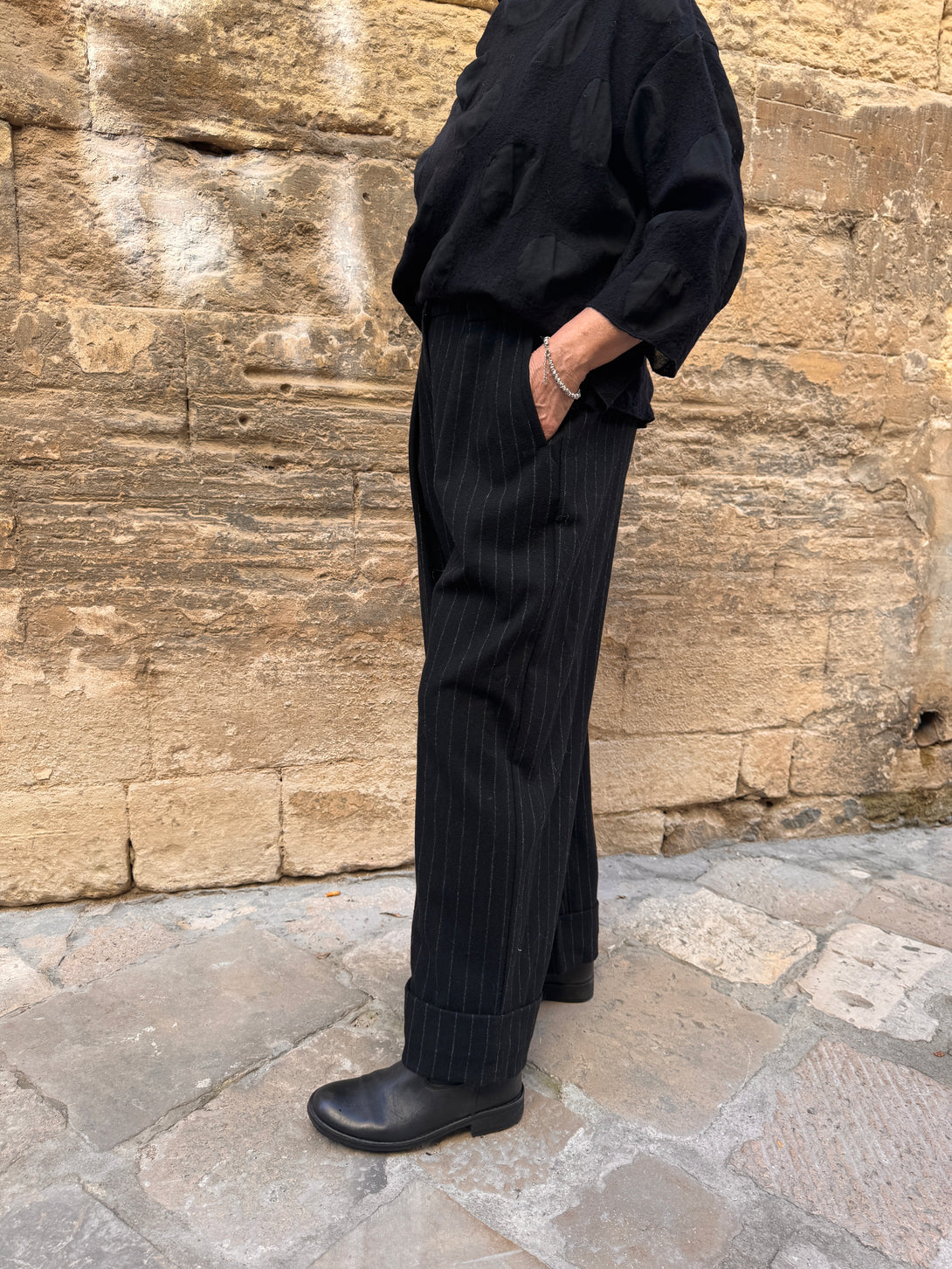 Pantalone gessato Cilian: il vostro nuovo alleato di stile. Vita alta che affina la silhouette, tessuto gessato che cattura lo sguardo con eleganza senza sforzo. Perfetto per chi ama il dettaglio raffinato e vuole sentirsi sicura di sé, dal mattino all'aperitivo. Un pezzo versatile che trasforma qualsiasi outfit in una dichiarazione di gusto consapevole.